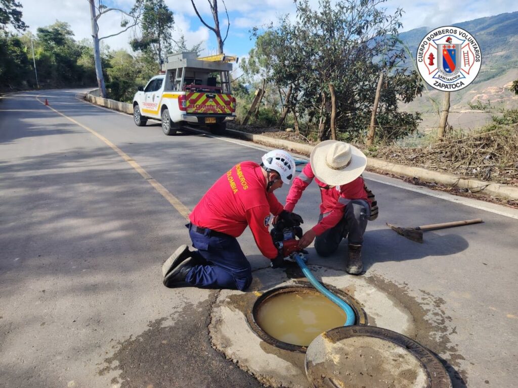 Se brindó apoyo a la Unidad de Servicios Públicos del municipio con el destaponamiento de la cañería ubicada en la vía Zapatoca – La Fuente, contribuyendo a la seguridad y el bienestar del sector.